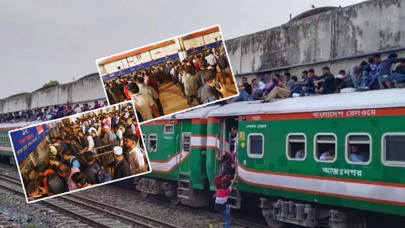মঙ্গলবার (১৭ মার্চ) ভোরেও সেই একই চিত্র বজায় ছিল। সরেজমিনে দেখা গেছে, প্রতিটি ট্রেনই যাত্রীতে কানায় কানায় পূর্ণ হয়ে স্টেশন ছাড়ছে। তবে আশার কথা হলো, যাত্রীচাপ কয়েক গুণ বাড়লেও এখন পর্যন্ত কোনো ট্রেন ছাড়তে বিলম্ব হয়নি।
